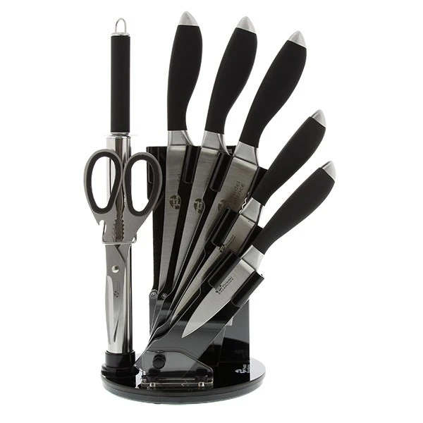 Ce bloc de 5 couteaux et accessoires très complet est composé de tous les ustensiles de découpe primordiaux pour cuisiner, ainsi qu’une paire de ciseaux et un fusil affûteur pour entretenir vos couteaux au quotidien ! En prime, un support tournant ultra design conçu pour le rangement de tous ces ustensiles donnera à vos couteaux un aspect moderne et aérien dans vos cuisines.