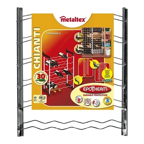 Le casier 30 bouteilles « Chianti » trouvera sa place dans votre cuisine mais aussi , pour les amateurs de vin , dans votre cave pour un stockage et conservation optimale.Les tubes et les fil ont un revêtement « epotherm » anti -corrosion.