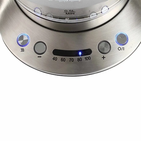 Cette bouilloire théière électrique sans fil avec température réglable va vous permettre de déguster vos thés et tisanes délicatement infusés ! Grâce à sa température adaptable, vous réussirez à coup sûr toutes vos infusions, et vous aurez même la possibilité de consommer différents types de thé : pour vos thés verts, faites chauffer votre eau à 70°C pour apprécier ses bienfaits, pour votre thé noir, préférez une température de 90°C ! Vous voyez, avec cet appareil de larges possibilités s’offrent à vous pour bénéficier des bienfaits de vos plantes préférées. Vous pourrez faire varier la température entre 40 et 100°C par palier de 20°C.