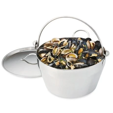 De grande contenance (9 L), cette marmite à crustacés est parfaite pour cuire langoustes, homards, crabes et tous types de crustacés sans débordement. Son fond épais assure une cuisson homogène. Idéale également pour cuisiner en grande quantité moules marinières, poissons et crustacés à l’armoricaine, navarin d’agneau, confitures, compotes, pâtes… Grâce à son bec verseur et sa anse le remplissage de bocaux est facilité. L’inox brillant lui confère une belle ligne.