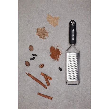 Après avoir conquis les cuisines des plus grands chefs grâce à ses râpes Premium Classic dérivées de la menuiserie, Microplane met à profit ses 30 ans de retours d’utilisation pour décliner ces râpes dans des modèles spécialisés. La râpe à fromage fine Gourmet noire Microplane profite d’une plus grande largeur que le modèle classique tout en gardant des trous fins, pour zester avec précision vos agrumes, chocolat, ail et fromages à pâtes dures. Doté d’une lame en acier inoxydable, matériau très résistant face à la rouille et l’usure, elle est taillée en un seul bloc grâce à un procédé de découpe par photochimie. Cette technique évite les points faibles et augmente la précision de la lame pour un outil durable et performant le plus aiguisé possible.