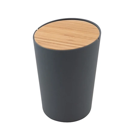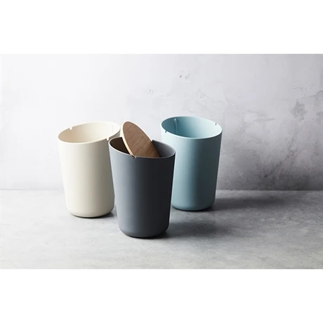 Design, la poubelle en fibre de bambou gris est simple et pratique. Le couvercle se bascule pour faire glisser vos déchets, et se referme pour éviter les mauvaises odeurs. L’ouverture est légèrement penchée pour permettre de jeter ses déchets plus facilement. La fibre de bambou a un effet antibactérien naturel.