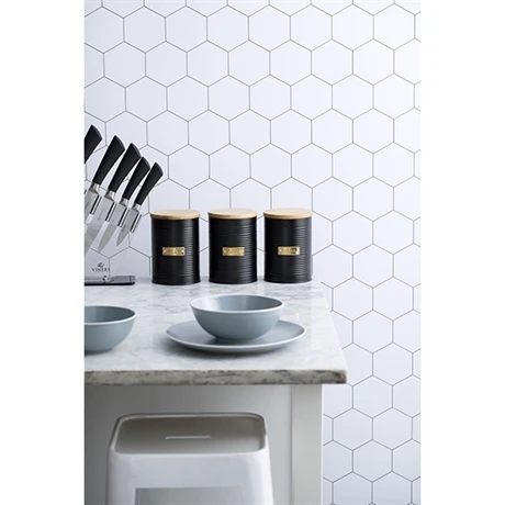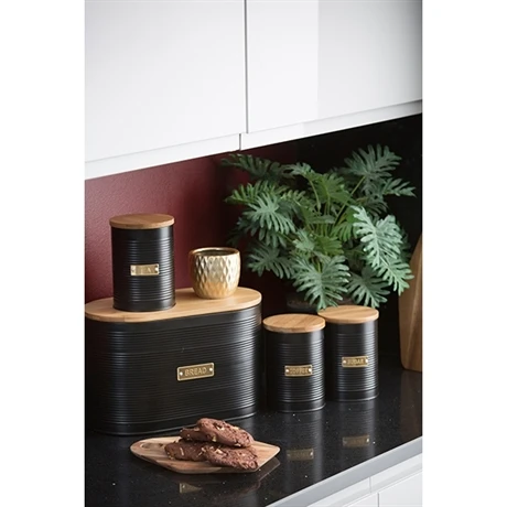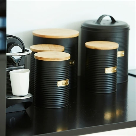 Avec ses finitions élégantes et sa conception résistante et durable, cette jolie boîte à thé 1 L noire a toute sa place en cuisine, sur une étagère ou le plan de travail.